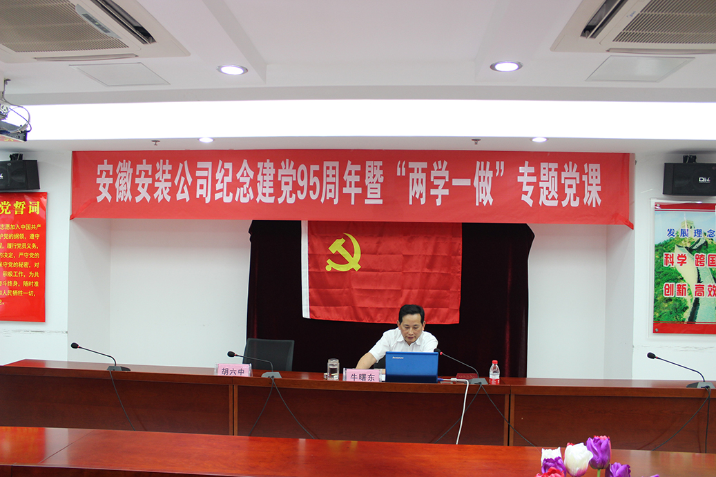 為了使廣大黨員深刻理解開(kāi)展“學(xué)黨章黨規(guī)、學(xué)系列講話(huà),做合格黨員”學(xué)習(xí)教育的重大意義,幫助廣大黨員明晰學(xué)習(xí)教育內(nèi)容、途徑與方法,確保“兩學(xué)一做”學(xué)習(xí)教育取得實(shí)效。6月29日下午, 集團(tuán)公司黨委副書(shū)記牛曙東到聯(lián)系點(diǎn)單位---安徽安裝公司開(kāi)展“兩學(xué)一做”專(zhuān)題