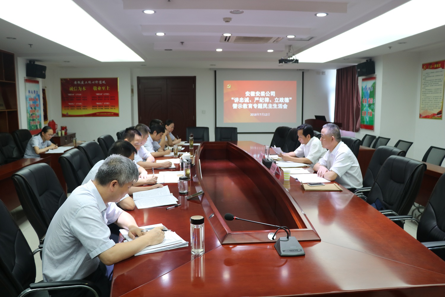 根據集團公司黨委關于“講忠誠、嚴紀律、立政德”專題警示教育統一部署,按照《安徽安裝公司關于以魯煒案徽商集團窩案等案件為反面教材開展“講忠誠、嚴紀律、立政德”專題警示教育的安排意見》要求,7月12日下午,安徽安裝公司黨委召開“講忠誠、嚴紀律、立政德”警示教育專題民主生活會。集團公司黨委副書記牛曙東,紀委副書記、紀檢監察室主任龔志酬到會指導。會議由公司黨委書記、副總經理胡六中主持,公司領導班子成員參加會議。