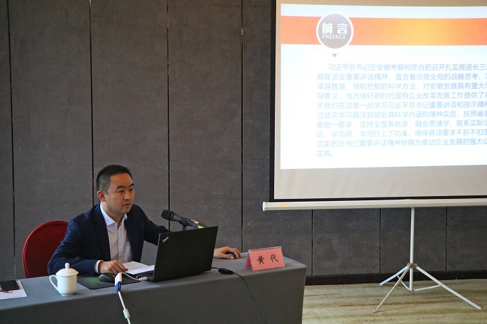 課上,黃代從四個方面宣傳貫徹了習(xí)近平總書記在安徽考察重要講話精神。一是提高政治站位,充分認(rèn)識習(xí)近平總書記考察安徽重要講話指示的重大意義。習(xí)近平總書記考察安徽重要講話指示精辟論述了我省當(dāng)前和未來發(fā)展的一系列方向性、根本性問題,在安徽發(fā)展史上具有極其重大的里程碑意義,習(xí)近平總書記專程視察中國寶武馬鋼集團(tuán)時發(fā)表的重要講話,也為我們做好國企工作提供了思想武器、指明了前進(jìn)方向、注入了強(qiáng)大動力。全體黨員領(lǐng)導(dǎo)干部要按照省委、省國資委統(tǒng)一要求,堅(jiān)持全面系統(tǒng)學(xué)、融會貫通學(xué)、聯(lián)系實(shí)際學(xué),確保深刻領(lǐng)會重大意義。二是把握核心要義,深刻領(lǐng)會習(xí)近平總書記考察安徽重要講話指示的精神實(shí)質(zhì)。“兩個堅(jiān)持”“兩個更大”,是總書記講話的核心要義,深刻回答了“十四五”乃至今后一個時期安徽發(fā)展在黨和國家全局中應(yīng)該承擔(dān)的使命、肩負(fù)的任務(wù),將安徽的發(fā)展層次、工作要求提升到前所未有的高度,是當(dāng)前和今后一個時期引領(lǐng)安徽發(fā)展的總方針、總遵循。三是聚焦重點(diǎn)任務(wù),切實(shí)答好加快美好安徽建設(shè)和集團(tuán)高質(zhì)量發(fā)展的必答題。全體黨員干部職工要深刻領(lǐng)悟全省領(lǐng)導(dǎo)干部“12個必答題”和安徽建工集團(tuán)“10個必答題”,緊扣目標(biāo)要求和各項(xiàng)任務(wù),謀深謀實(shí)貫徹落實(shí)的具體思路、促進(jìn)發(fā)展的實(shí)際舉措、推動工作的保障機(jī)制。四是營造濃厚氛圍,全面掀起學(xué)習(xí)貫徹習(xí)近平總書記考察安徽重要講話熱潮。安徽安裝公司要以“大學(xué)習(xí)”“大宣傳”“大調(diào)研”“大落實(shí)”為抓手,確保對重要講話精神融會貫通、入腦入心、明晰思路、落地見效。