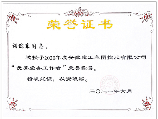 胡迎東同志自1986年參加工作以來,在安徽安裝公司工作了三十五年,這三十多年來他如一日地忠于企業,心系企業,從基層一線做起,崗位涉及技術員、項目經理、分公司經理、生產管理、工程管理和支部書記等,工作經歷豐富,歷練完整。無論從事什么工作、無論擔當什么職務,不論在機關,還是在基層,都恪盡職守、盡職盡責、任勞任怨,且都干的樣樣出彩。