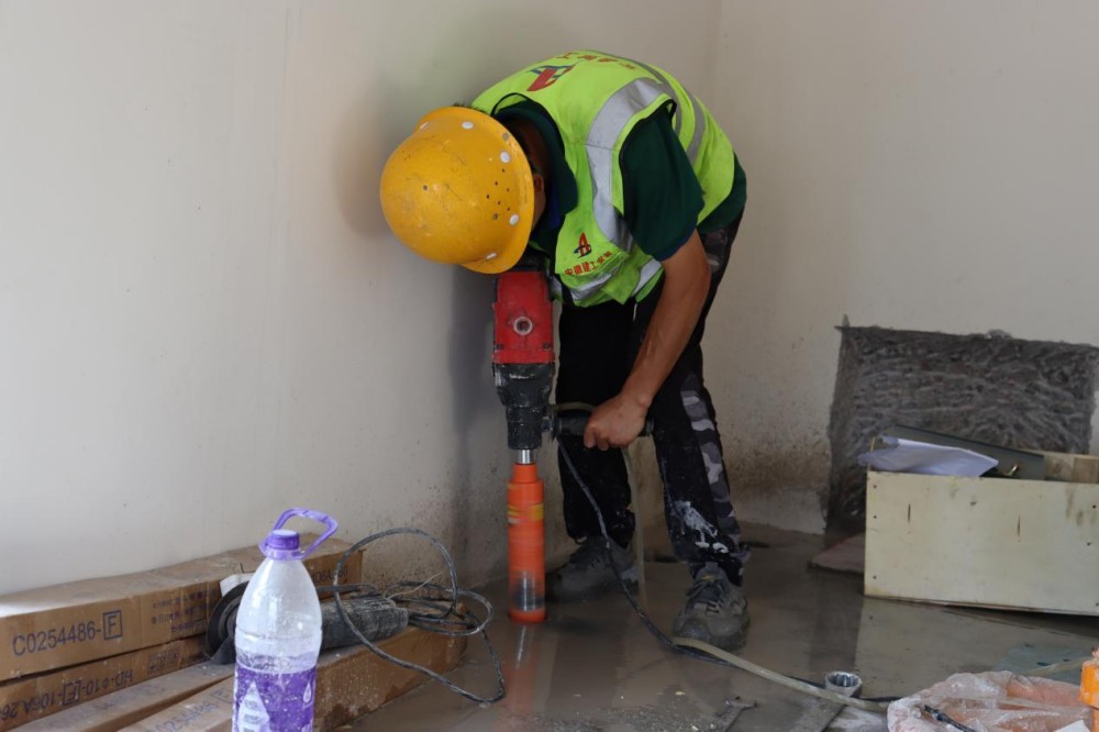 肥西縣城鄉(xiāng)一體化發(fā)展花崗項(xiàng)目施工人員正在對(duì)機(jī)房地面進(jìn)行孔洞開(kāi)鑿